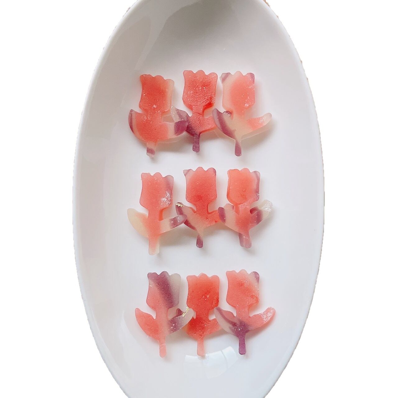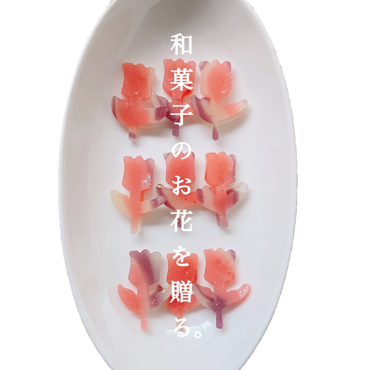 お花の羊羹は、紅白を混ぜたマーブル模様