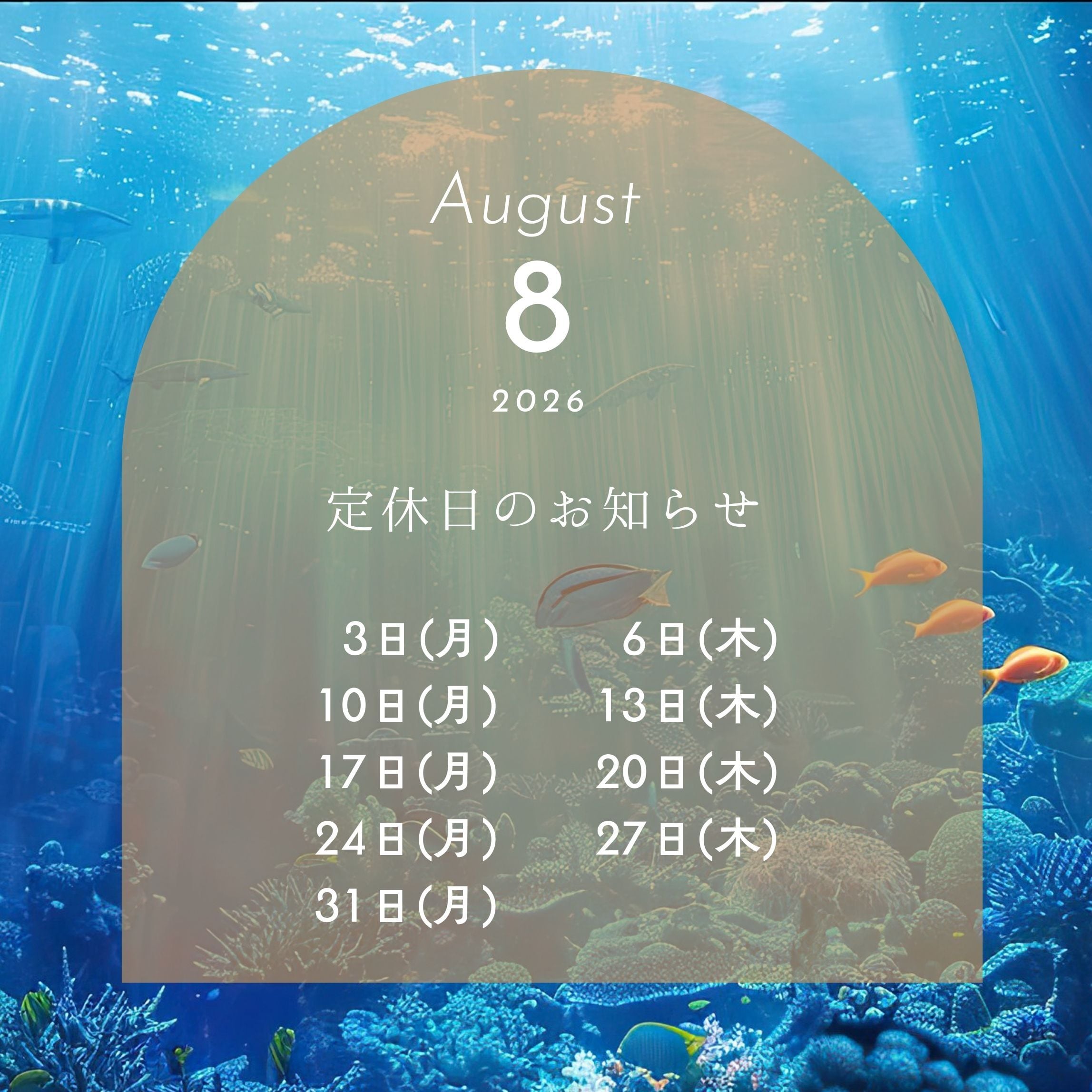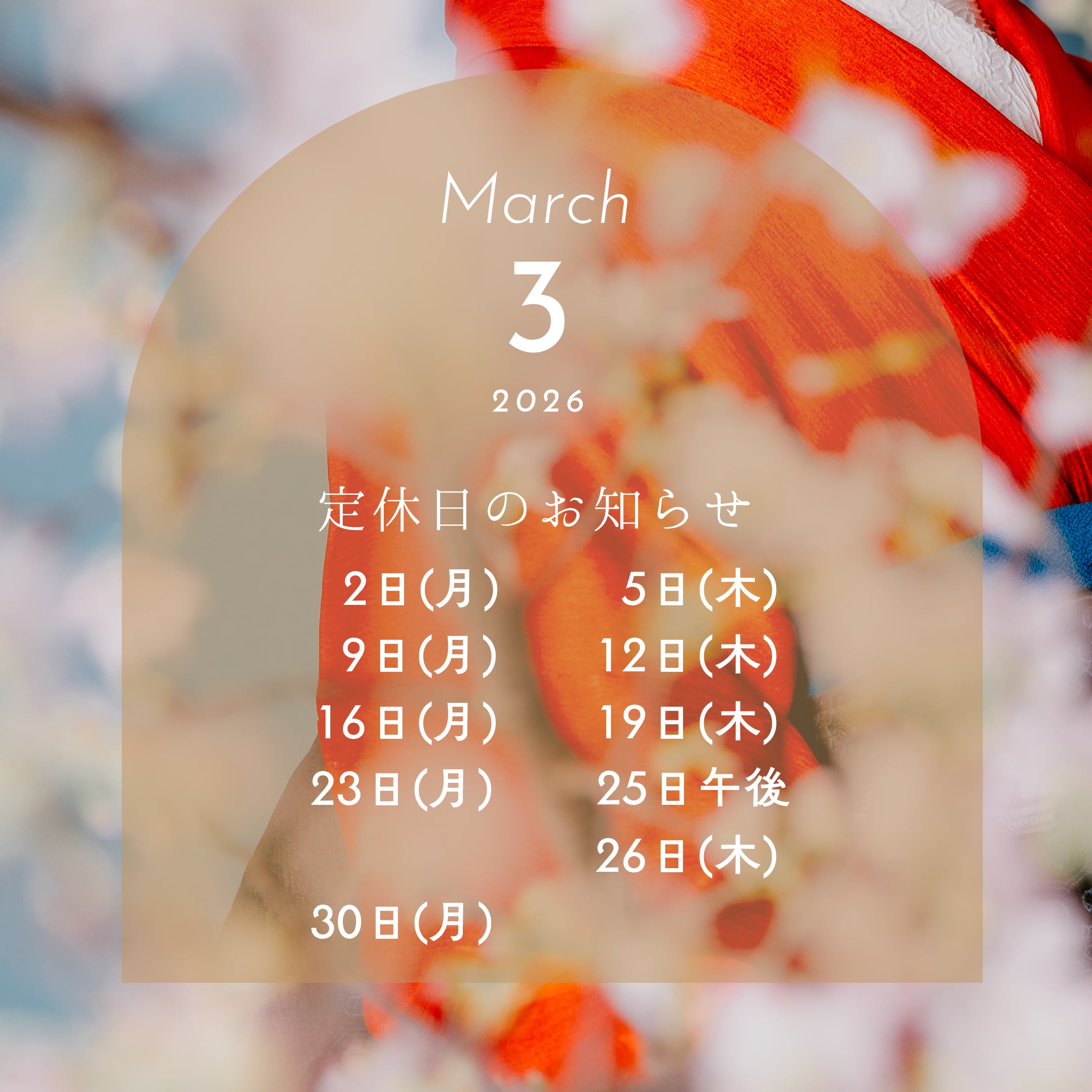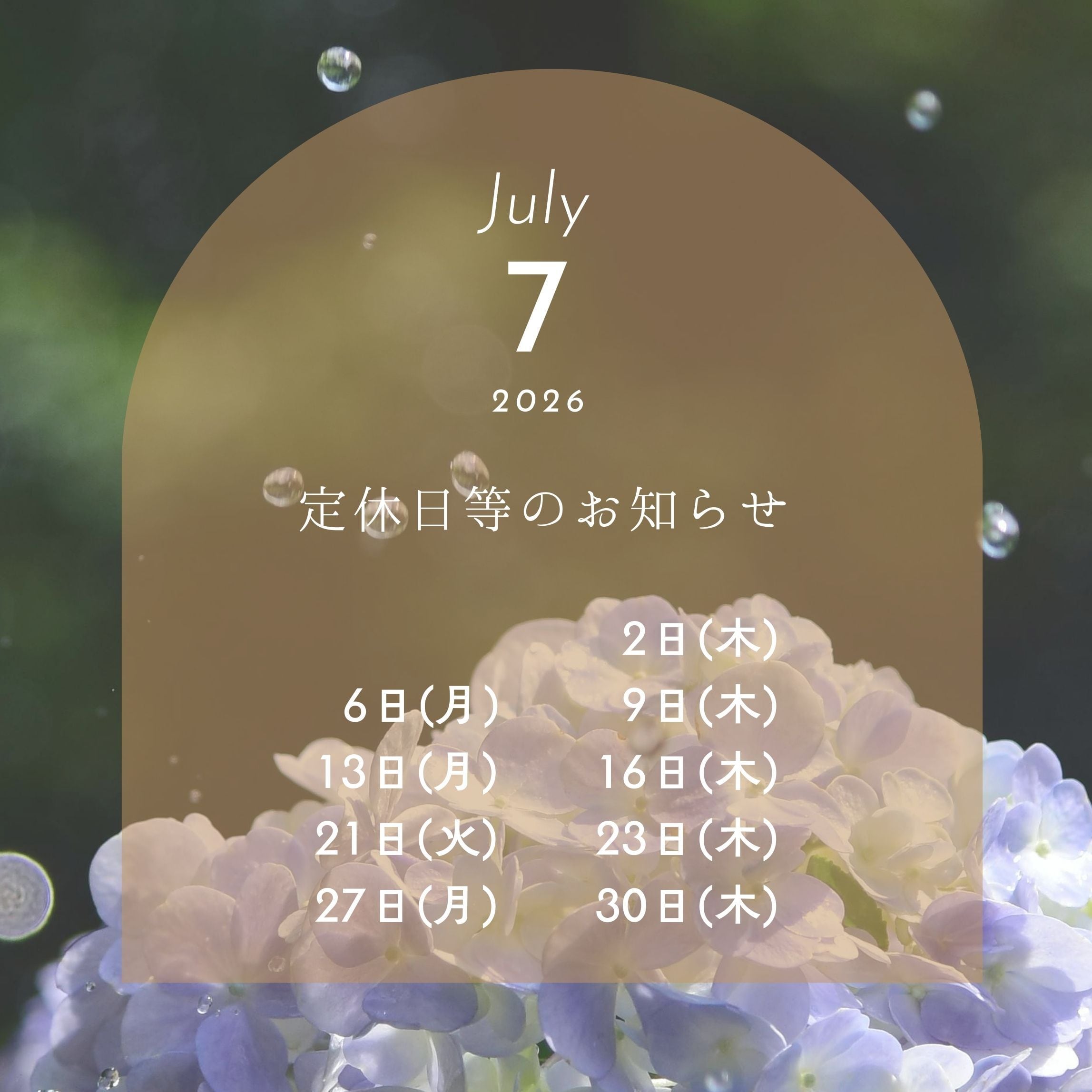 定休日等のお知らせ